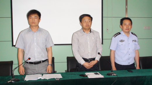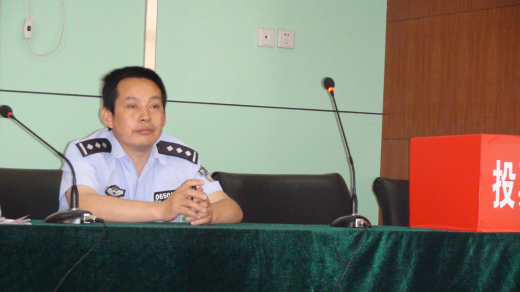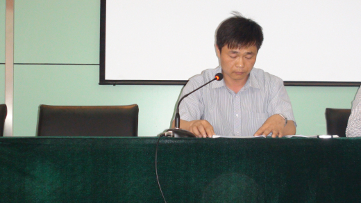图为如皋市石庄镇纪委书记兼副镇长刘华(中)在主席台宣读选举法