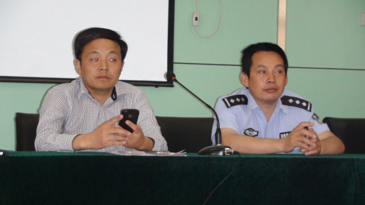 如皋市石庄镇派所副所长张照林(右)在人大代表选举大会主席台就座