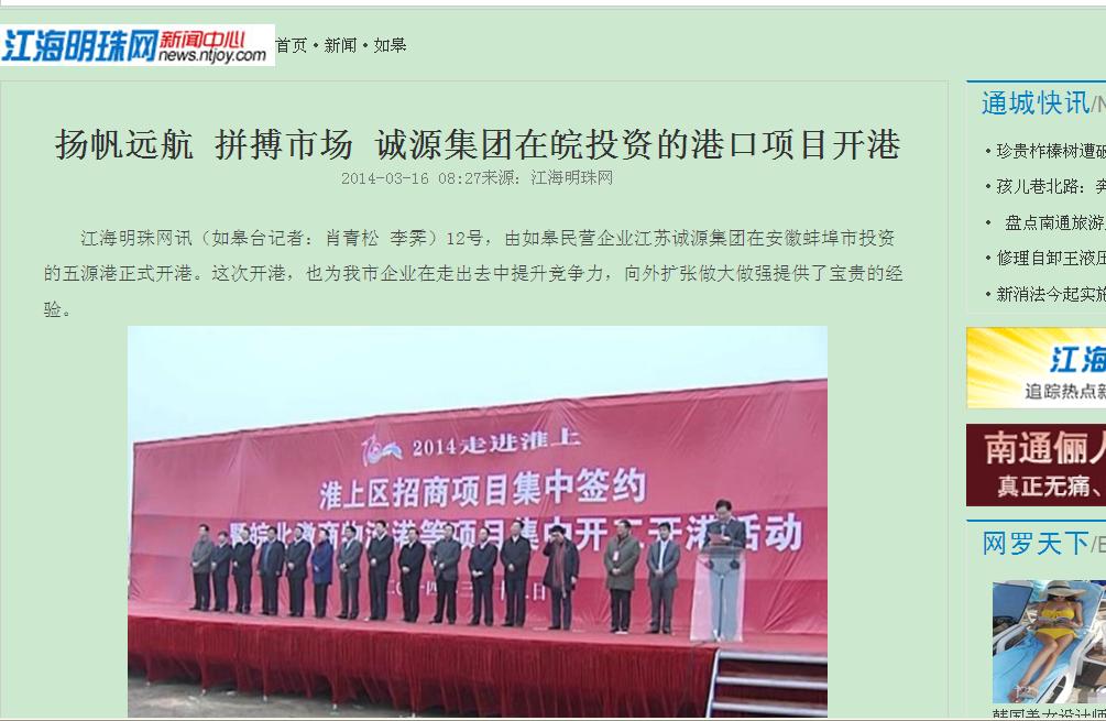关于“诚源港务集团在皖投资的港口项目开港”的新闻报道