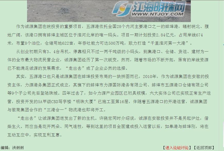江海明珠网关于“集团在皖投资的港口项目开港”的新闻报道